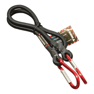 QUICKLOADER bungee with carabiner that ensures it will not slip off. Suitable for bikes, camping, roof racks, hand carts, caravans and all the rest.