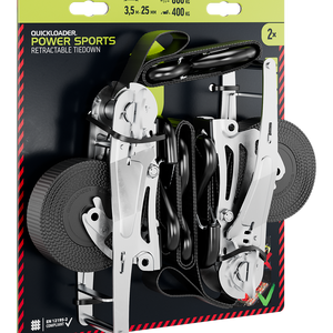 QUICKLOADER® Retractable Power Sports QL800PS 3,5M is the easiest and fastest tie-down for motorcycles, mopeds, ATVs and all the rest. Power Sports is a new kind of retractable tie-down that ensures safe transportation of loads. Transporting smaller vehicles has never been so easy.